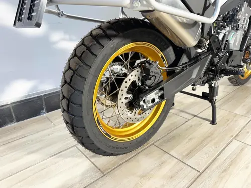 7:1 Clutch Type: Wet multi-disc, slipper clutch Throttle: Electronic Power Modes: Sport / Rain / Off-road / All-terrain Dimensions Length x Width x Height: 2,234 × 853 × 1,475 mm Wheelbase: 1,531 mm Seat Height: 825 mm Fuel Capacity: 19 L Curb Weight: 231 kg (excluding side box) Brakes