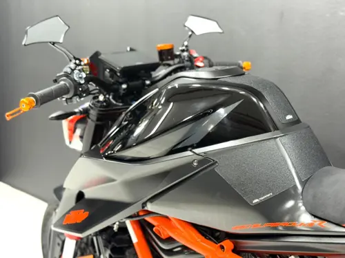 The glow of the unmissable KTM orange-and-black trim or the more neutral but elegant hue of KTM’s graded gray aesthetic.” (who writes...